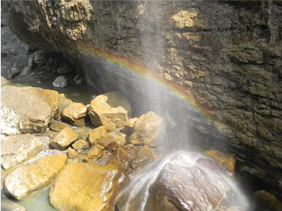 在朦胧水雾中漫步在幽微灵秀的银龙瀑布下,彩虹阳光与水雾并存。银龙瀑布下有一个石头似小心脏,瀑布落下与它撞击发出了似心脏跳动的声音。银龙用银水洗涤着世上每个人的心灵,无论多么铁石心肠的人都可以炼成绕指柔。