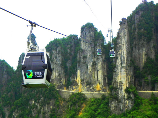 捎带一思想的行囊,一路采撷天堂里的灿烂。这是一个阳光明媚的下午,幽微灵秀,静逸柔美。伴随轻音乐我坐上了去往七星寨的索道,沿途的樱花争相吐露芬芳,树木成荫;居高临下蜿蜒蛇行的盘上公路险峻异常,在频繁的转弯中看到了劲拔的树木还有满山樱花真是苍山如画,此时的我有种心跳的感觉,犹如初恋时的羞涩。